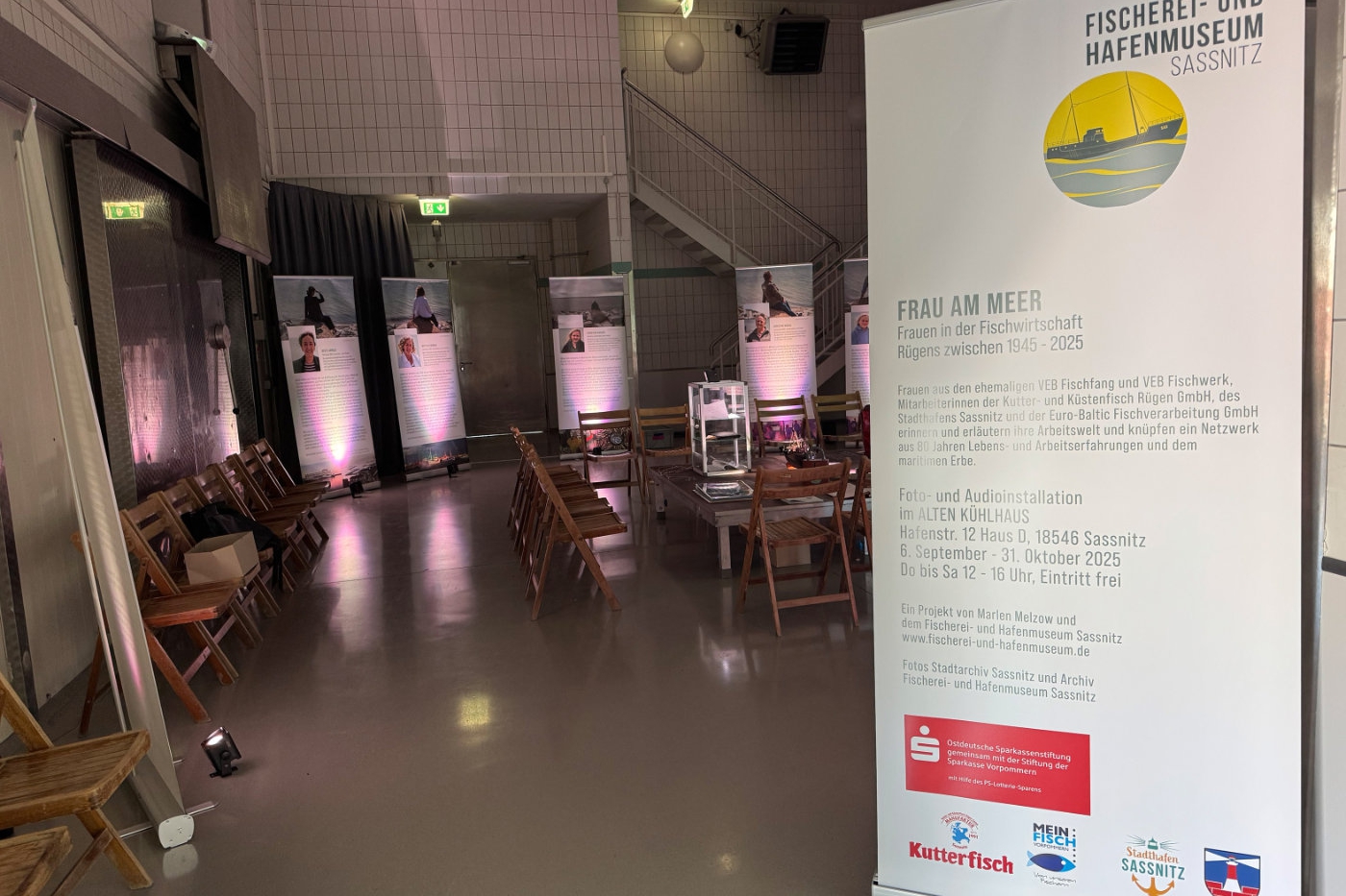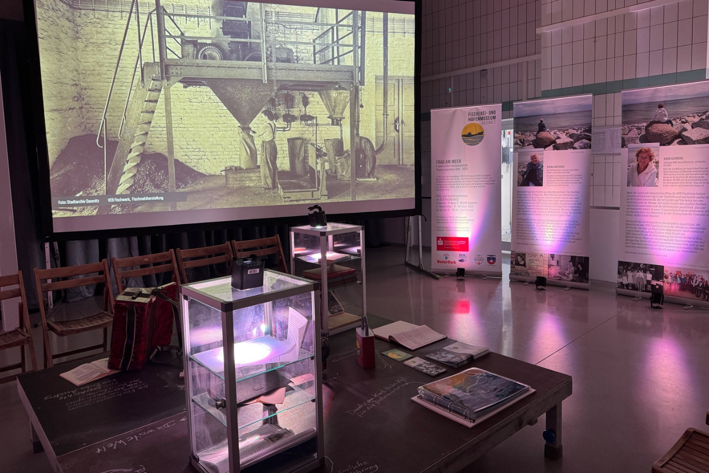 Frauen aus den ehemaligen VEB Fischfang und VEB Fischwerk, Mitarbeiterinnen der Kutter- und Küstenfisch Rügen GmbH, des Stadthafens Sassnitz und der Euro-Baltic Fischverarbeitung GmbH erinnern und erläutern ihre Arbeitswelt und knüpfen ein Netzwerk aus 80 Jahren Lebens- und Arbeitserfahrungen und dem maritimen Erbe.